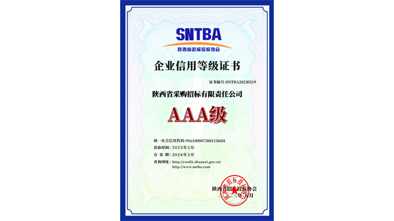 陜西省招標(biāo)投標(biāo)協(xié)會(huì)2023年AAA企業(yè)